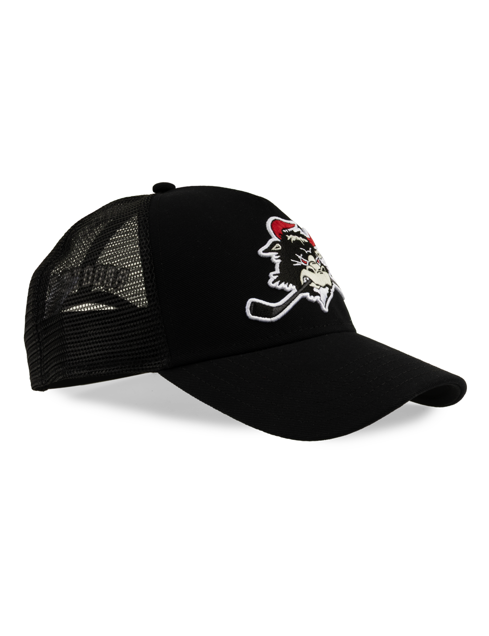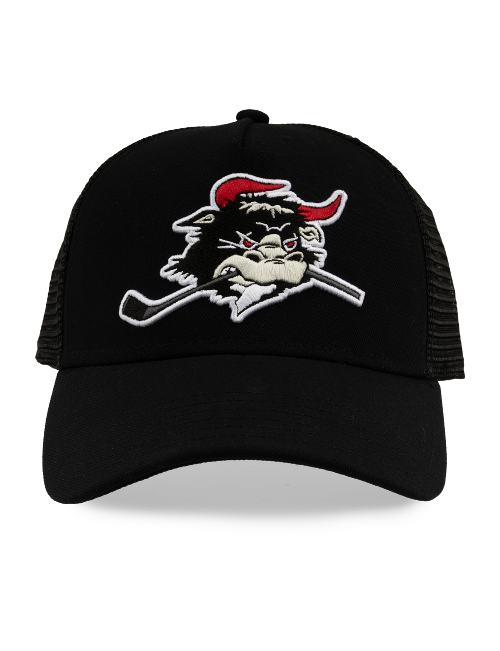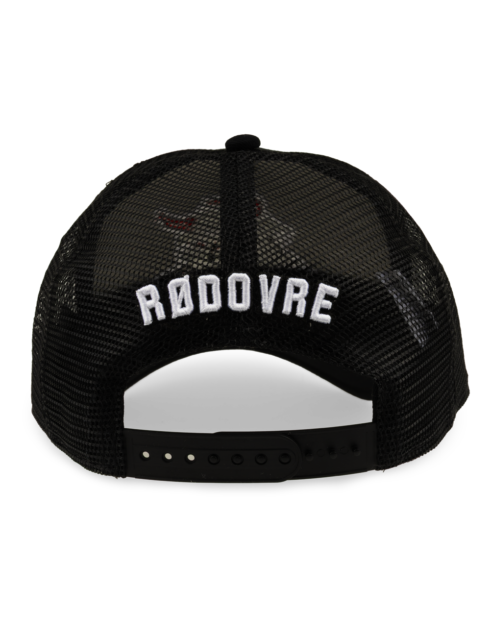 Stilren sort Rødovre Mighty Bulls trucker cap med broderet Mighty Bulls-logo på fronten og “RØDOVRE” broderet bagpå. Cappen har det klassiske trucker-design med mesh bagpå, som giver god ventilation og en let og behagelig pasform.